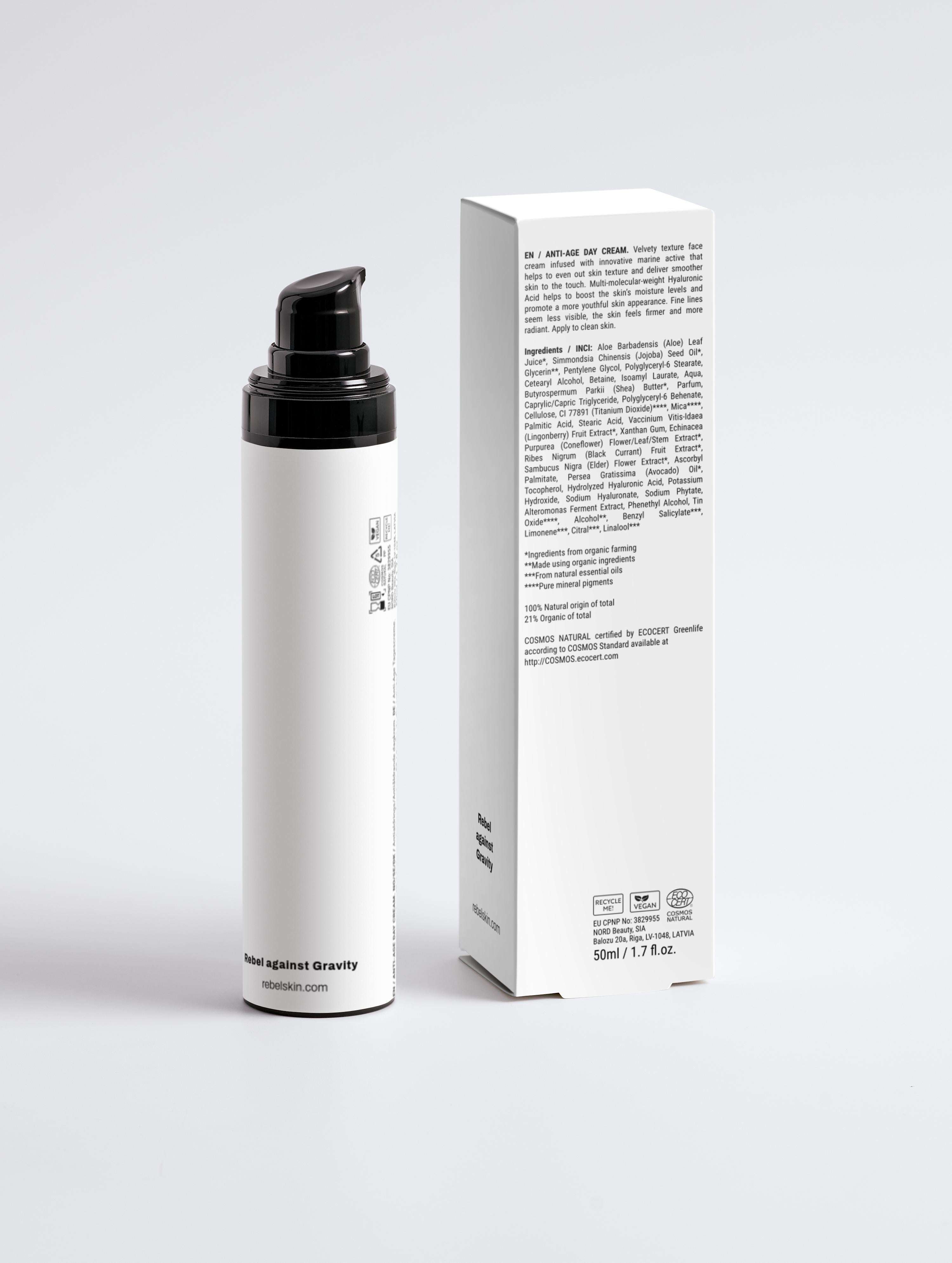 Introducing the Rebel Skin Anti-Age Day Cream – a luxurious, velvety formula powered by innovative marine actives designed to refine skin texture and deliver a silky-smooth touch.